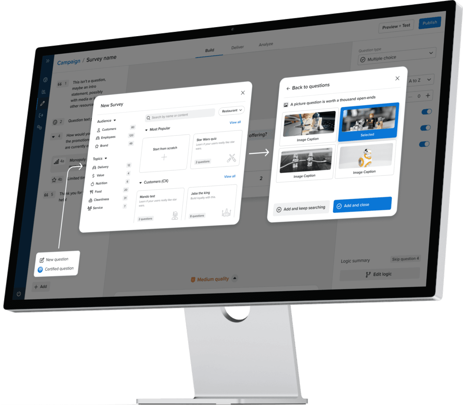 By adding carefully selected icons and clearing up the unique names, users selected the correct question type almost every time, and faster.